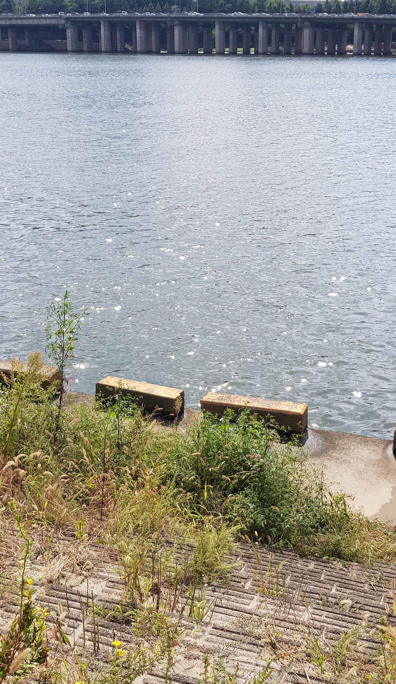 회사 근처의 강변으로 향한 걸음은 강가에 다다르면서 느릿해졌다. 숨과, 걸음과, 생각의 속도가 잔잔해졌다. 점심시간의 강변은 사람 하나 없이 고요했다. 강가에 걸터앉아 점심거리로 챙겨온 샌드위치를 베어 물며 강물을 바라보았다. 강은 조용하지만 분주하게 수많은 결을 접으며, 접으며, 출렁거렸다. 앞으로 흐르다가도, 아니, 뒤로 흐르는 것 같다가도, 머물러 있는 것 같기도 했다. |