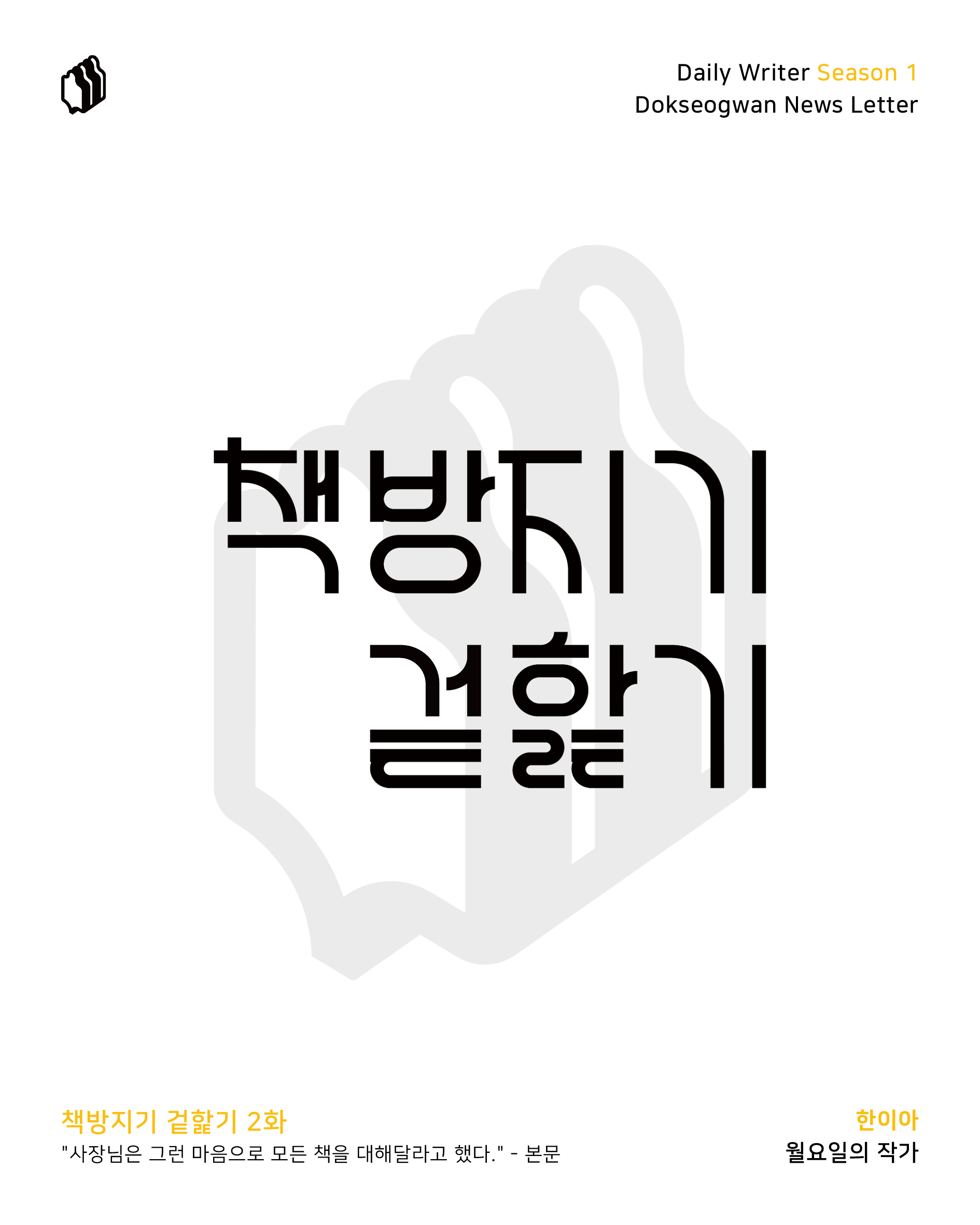 사장님은 그런 마음으로 모든 책을 대해달라고 했다. 매일 먼지를 털 때마다 저 대화가 생각난다. 책의 의미를 사랑하는 건 기본이고 책의 물성도 사랑해야 하는 게 책방지기의 기본 마음가짐이란걸 배웠다. 새로이 오픈한 지점이라 매뉴얼이 없었다. 기존에 운영하던 곳과 지역도 달랐고(여긴 3호점이다.) 취급하는 도서 분야도 달랐기에 기존의 것을 적용할 순 없었다. 요리도 만드는 사람에 따라 맛이 다르듯 나라는 새로운 인물이 관리하는 책방은 기존의 것과 같을 수가 없었다.